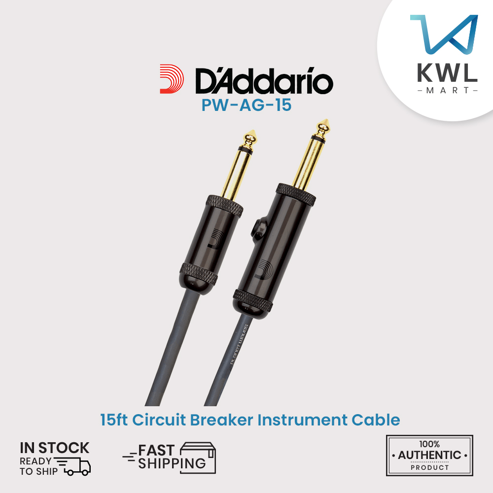 D’Addario PW-AG-15 Circuit Breaker Instrument Cable, Straight to Straight with Momentary Switch, 15ft