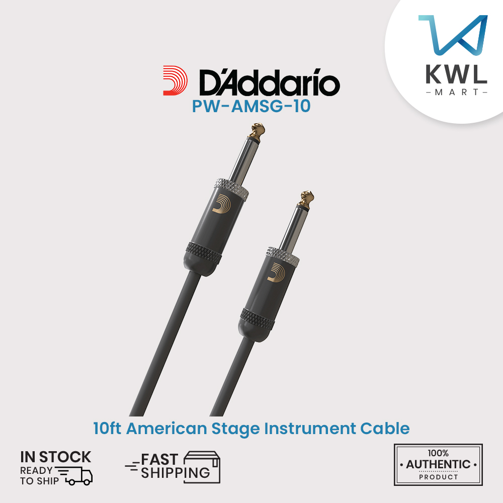 D’Addario PW-AMSG-10 American Stage Instrument Cable, Straight to Straight, 10ft