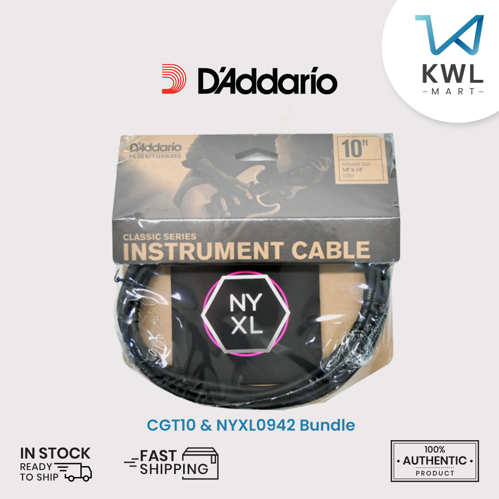 D’Addario CGT10-NYXL0942 Instrument Cable & Guitar Strings Bundle