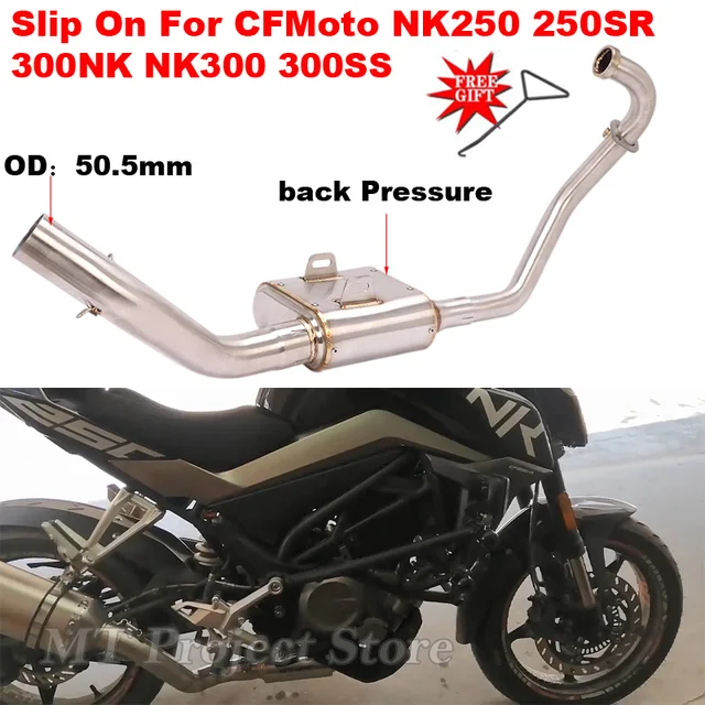 Silenciador de motocicleta, escape modificado, tubo de conexión de presión delantero y trasero para CFMOTO NK250, NK250SR, 300NK, NK300, 300SS, NK300SR